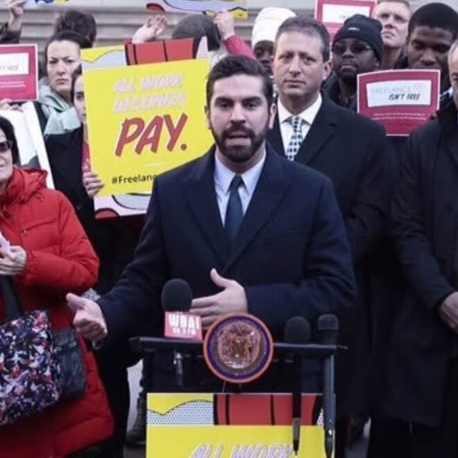Rafael Espinal is a former New York City Councilmember and New York State Assemblymember. In 2020, Rafael became the Executive Director of the Freelancers Union after a long history of advocating for the rights of freelance workers.