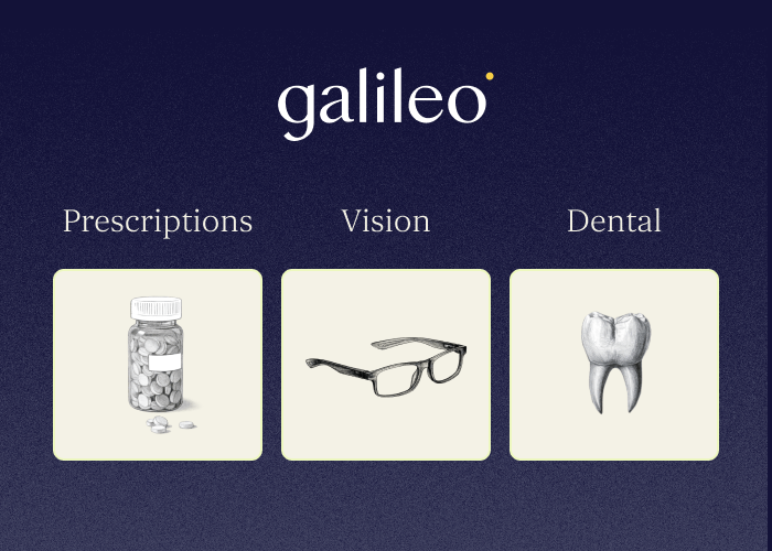 Galileo only provides medical care. If you require other benefits, you can purchase a separate package, which includes Galileo Medical in addition to dental, vision, and prescriptions.